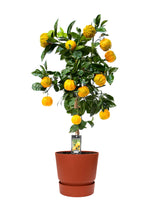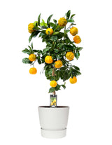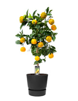 Die Frucht der Canaliculata ist ungewöhnlich geformt: geädert und gerippt. Diese Zitrusfrucht hat ihren Ursprung in der Toskana. Die Blätter sind tiefgrün und duften. Der saure Saft und die abgeriebene Schale der Bitterorange werden zur Verarbeitung von Gerichten verwendet. Ob im Wohnzimmer, auf dem Balkon, der Terrasse oder im Garten, die Pflanze fühlt sich überall wohl. Die Canaliculata ist nicht winterhart. Die reifen Früchte werden orange und dienen eher der Dekoration als dem Verzehr. Diese pflegeleichte Zimmer- und Outdoorpflanze ist ca. 80 - 90 cm hoch und befindet sich im 22er Pflanztopf. Der stylisch schlichten Übertopf Greenville ist in 4 edelmatten Farben erhältlich. Dieser versorgt dank des integrierten Wasserreservoirs deine Pflanzen gleichmäßig mit Wasser und unterstützt auf diese Weise ihr kräftiges sowie gesundes Wachstum. Der rPot ist zu 100% aus recyceltem Kunststoff hergestellt und besonders wasserfest, Marke: Elho. Durchmesser: 25 cm