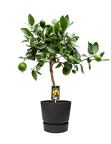 Die XL Mexikanische Limette ist auch unter dem botanischem Namen Aurantiifolia bekannt was soviel wie 'goldenes Blatt' heißt. Für viele ist sie die echte Limette - die Mexikanische Limette Citrus aurantifolia. Tatsächlich liefert sie die runden, immergrünen Limetten. Mit seinen wunderbar duftenten Zitrusfrüchten bringt er mediterrane Stimmung nach drinnen & draußen. Ob im Wohnzimmer, auf dem Balkon, der Terrasse oder im Garten, die Pflanze fühlt sich überall wohl. Die Limetten sind klein und rund, bleiben aber grün. Das besondere am Citrus aurantifolia ist, sowohl die hübschen weißen Blüten und auch die Blätter aromatisch duften. Die Blüten erscheinen nach den ersten warmen Wochen im mittleren bis späten Frühjahr. Die Citrus Green Lime bleibt im Winter drinnen und kann im Frühjahr wieder nach draußen. Die Früchte dienen eher der Dekoration als dem Verzehr. Diese pflegeleichte Zimmer- und Outdoorpflanze ist ca. 80-90 cm hoch und befindet sich im stylisch schlichten rPot Greenville. Dieser versorgt dank des integrierten Wasserreservoirs deine Pflanzen gleichmäßig mit Wasser und unterstützt auf diese Weise ihr kräftiges sowie gesundes Wachstum. Der Übertopf ist 4 edelmatten Farben und zu 100% aus recyceltem Kunststoff hergestellt und besonders wasserfest, Marke: Elho. Durchmesser: 25 cm