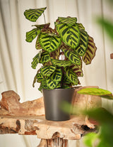 Calathea Makoyana wächst im tiefsten Dschungel, verborgen vor allen Augen. Die grüne Blattschönheit stammt ursprünglich aus den Urwäldern im Amazonasgebiet Südamerikas. Dort lebt sie im Schatten unter der dichten Vegetation. Calatheas werden wegen ihrer einzigartigen Blattbewegung oft "Gebetspflanzen" genannt - sie heben und senken ihre Blätter Tag und Nacht im zirkadianen Rhythmus. Wissenschaftler gehen davon aus, dass diese Bewegungen der Sonne folgen und so viel Licht wie möglich fangen sollen - ein wesentliches Merkmal für eine Waldbodenpflanze!