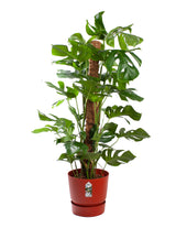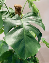Das pflegeleichte Fensterblatt ist ca. 1,20 Meter hoch mit 24cm Topfdurchmesser. Der Moosstab dient als Rankhilfe.