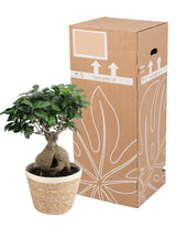 Der Ficus Ginseng besticht durch seine schlichte Eleganz. Unverkennbar an seinen unregelmäßig geformten Luftwurzeln und seinen kleinen glänzenden ovalen Blättern. Gingseng ist chinesisch und bedeutet „Wurzel“. Diese asiatische Schönheit erinnert an einen Bonsai-Baum. Die pflegeleicht Zimmererpflanze brauchen wenig Wasser, dafür aber ein helles Plätzchen. Eine gute Wahl für Anfänger! Der Ginseng hat eine Höhe von ca. 50 cm und wird in einem schönen Naturkorb geliefert. Durchmesser: 20cm Material: Geflochtener Korb
